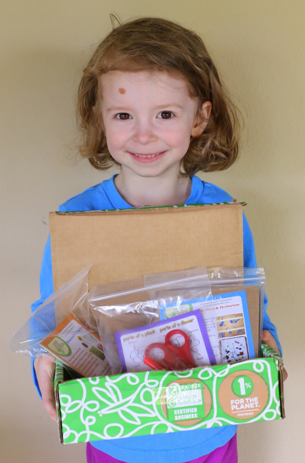 The box i received from greenkidcrafts.com was a standard one that's identical then she got to work on the crafty part of the green kid crafts box.